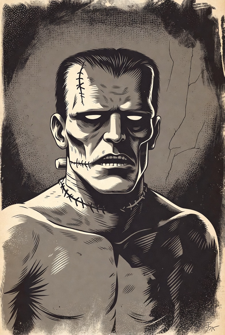 Frankenstein Monster Portrait Illustration