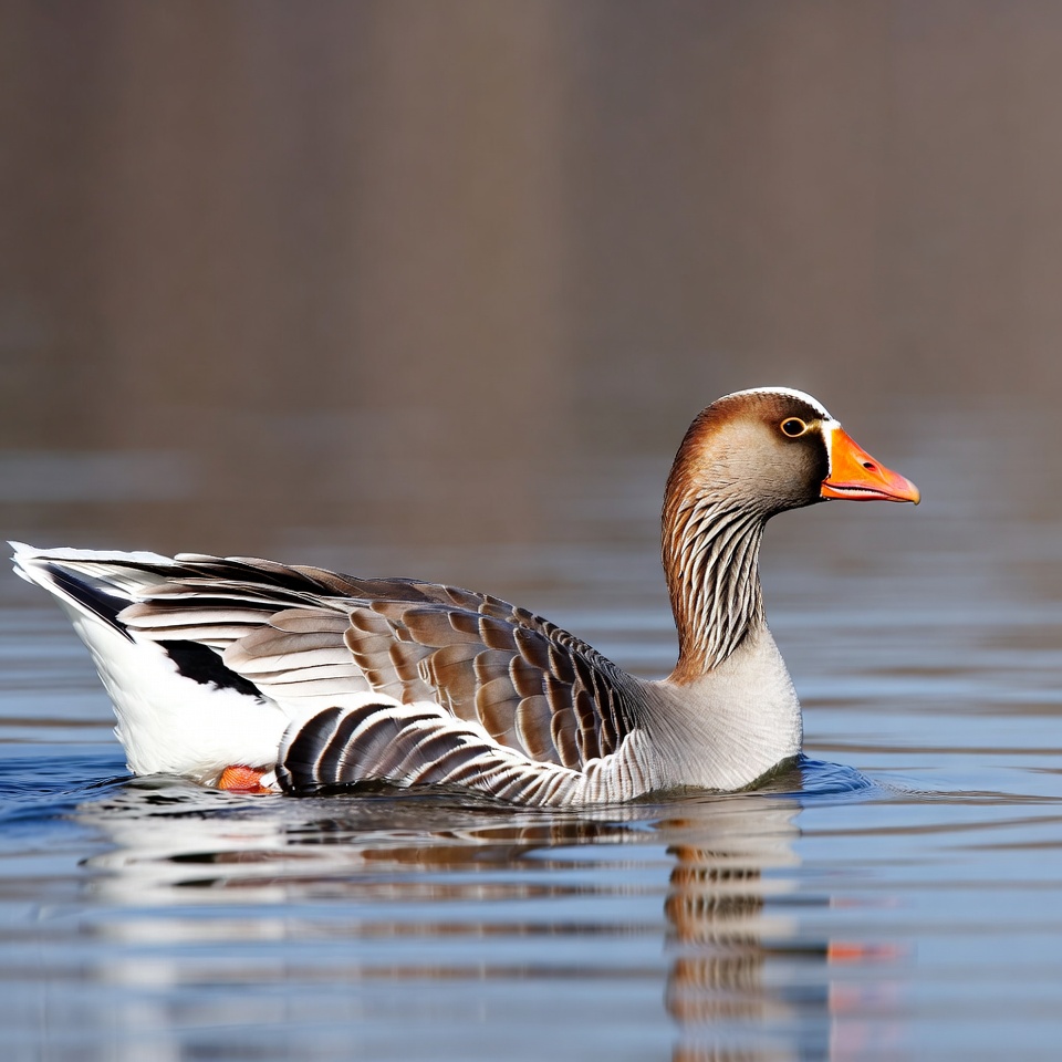 animal, bird, feathers, goose, isolated background, nature, orange bill, outdoors, reflection, swimming goose, water, water bird, waterfowl, wildlife, greylag goose