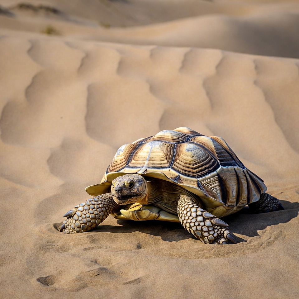 Sulcata Tortoise on Desert Dunes