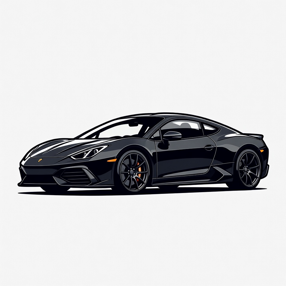 Huracan, aggressive styling, air vents, alloy wheels, automotive design, black car, car illustration, coupe, front view, headlights, illustration, isolated background, luxury car, performance car, side view, sleek design, sports car, supercar, vector art, Lamborghini