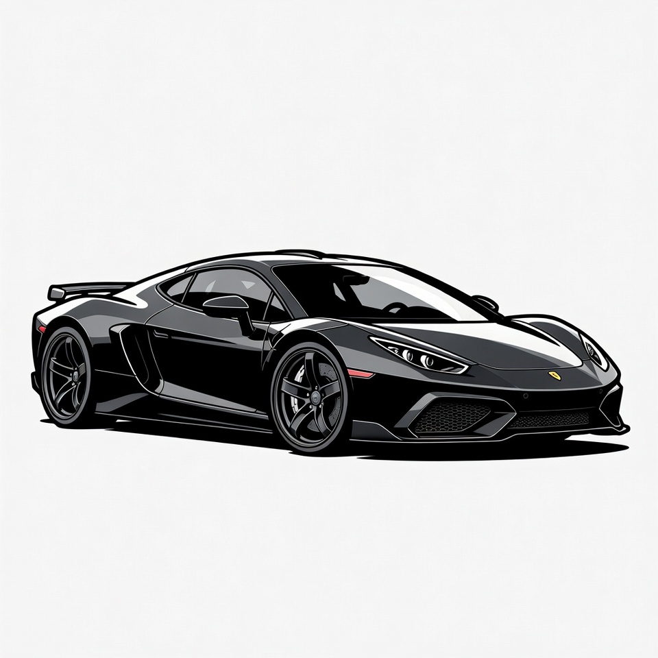 Aventador, angular design, automotive, black car, clipart, exotic car, fast car, front grille, headlights, illustration, isolated background, line art, luxury car, race car, rear wing, rims, sports car, supercar, vector art, vents, wheels, yellow emblem, Lamborghini