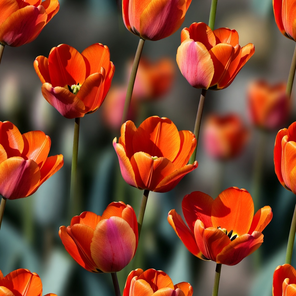 black centers, blooming tulips, floral design, floral pattern, flower arrangement, flower background, flowers, garden flowers, green stems, orange flowers, pink edges, repeating pattern, seamless pattern, spring flowers, tulip bouquet, tulip field, tulip pattern, tulips, vibrant tulips, orange tulips