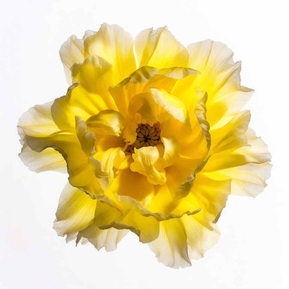 bloom, bright yellow, chrysanthemum, closeup, daisy-like, floral, flower center, fresh flower, garden flower, isolated, mum flower, nature, petals, ruffled petals, top view, vibrant yellow, white background, yellow mum, yellow flower