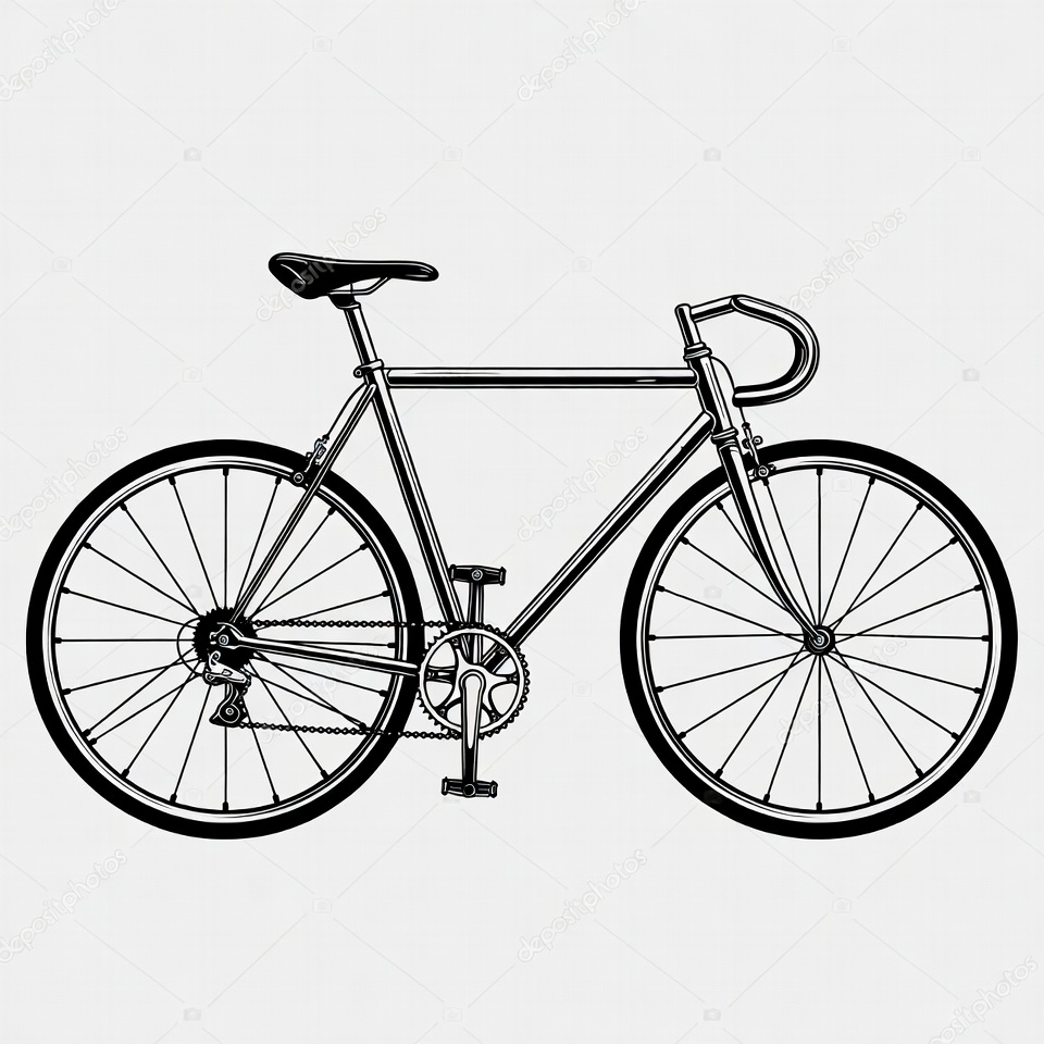 bike, black white, chain, clipart, cycling, drop handlebars, frame, handlebars, illustration, isolated background, line drawing, outline, pedals, racing bike, road bike, saddle, sketch, spokes, sport bike, thin wheels, vector, bicycle