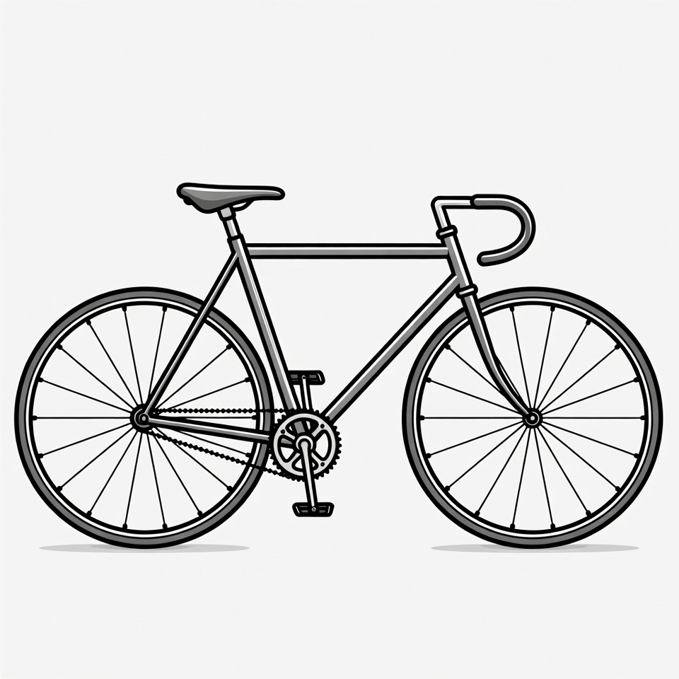 bicycle, bike, black outline, chainring, clipart, cycling, drop handlebars, fixed gear bike, frame, illustration, isolated background, line art, minimalist drawing, pedals, racing bike, sport bike, thin tires, vector art, velodrome bike, track bicycle