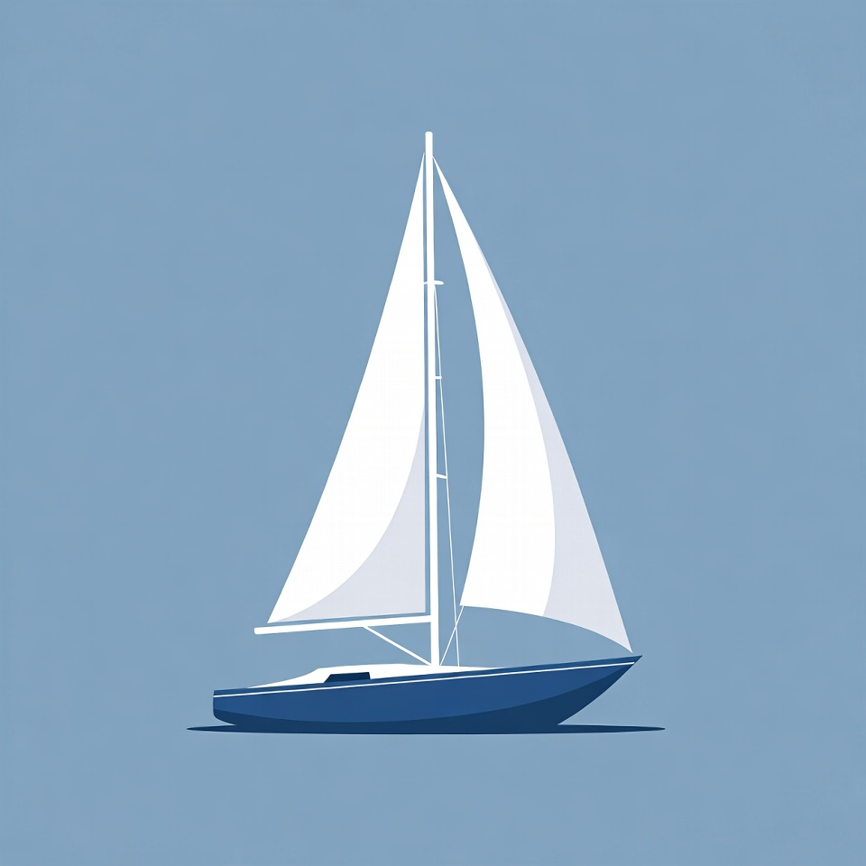blue hull, boat, clipart, illustration, isolated background, marine, mast, nautical, sail, sailing, sea vessel, vector art, watercraft, white sails, yacht, sailboat