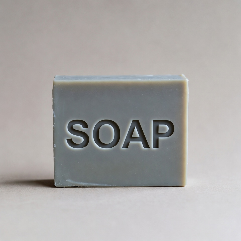 bar soap, bath soap, embossed soap, gray soap, handmade soap, hygiene product, isolated background, matte soap, natural soap, rectangular soap, soap bar, soap product, soap