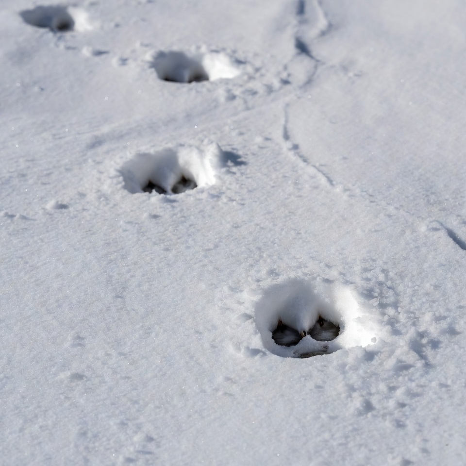 animal footprint, animal tracks, canine tracks, claw marks, closeup, dog tracks, footprints, fresh snow, nature, outdoors, pad prints, paw prints, snow, snowy ground, trail, white snow, winter, dog paw prints