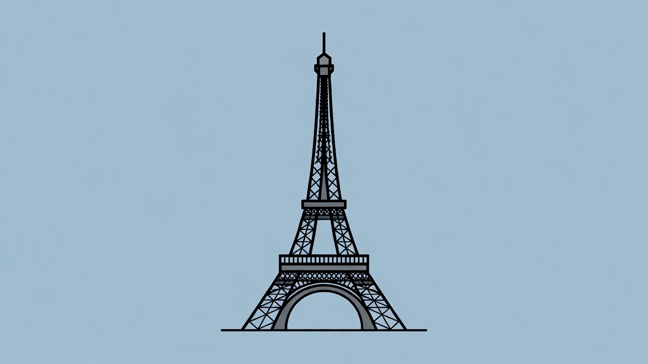 France, Paris, architecture, black outline, blue background, clipart, icon, illustration, isolated background, landmark, line art, silhouette, tourist attraction, travel, vector, Eiffel Tower