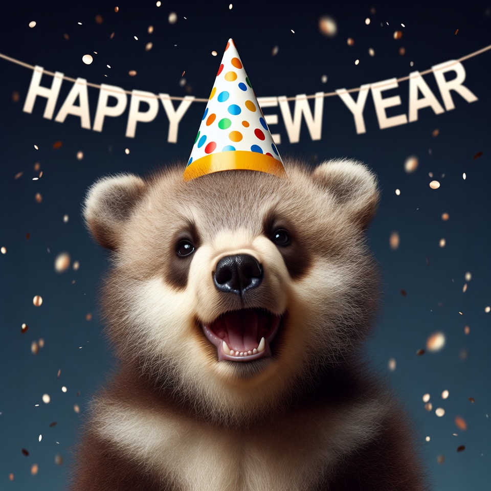 Bear Wearing Happy New Year Party Hat