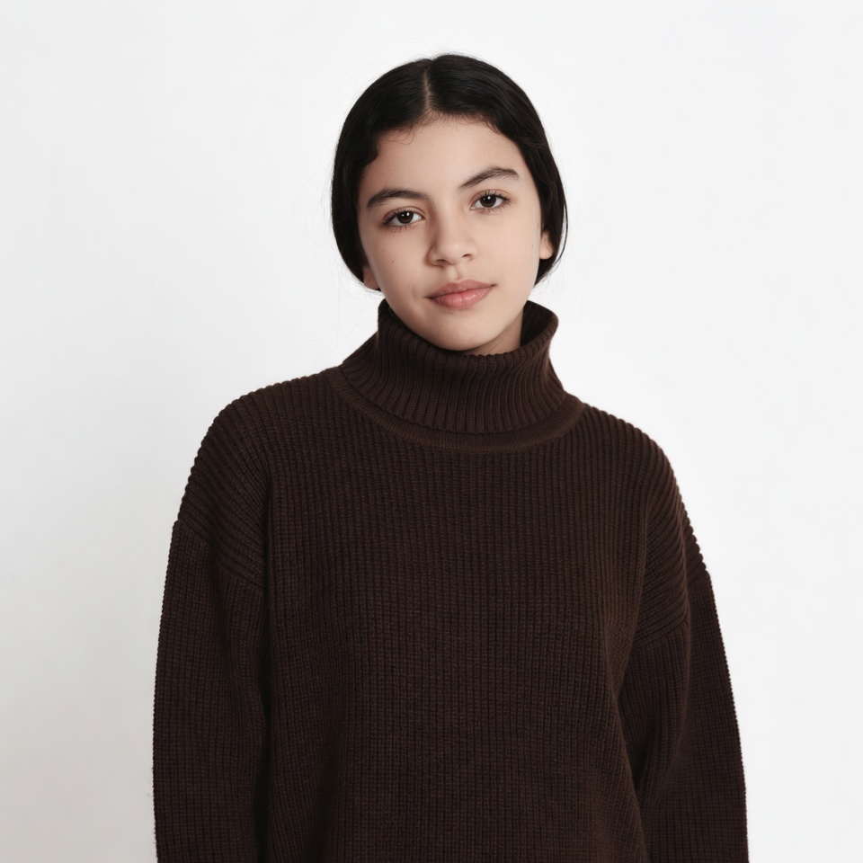 Latina teen in brown turtleneck sweater
