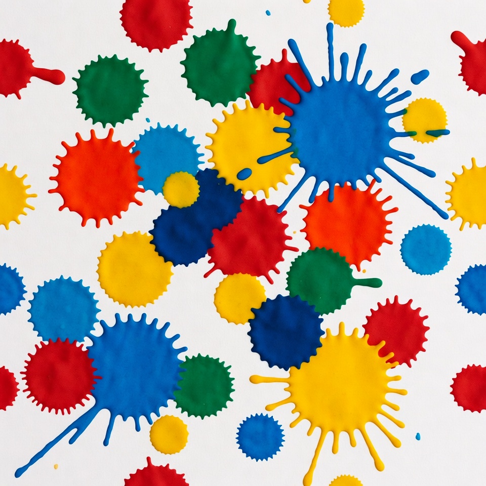 abstract art, art supplies, blue paint, colorful paint, creative pattern, green paint, ink splatters, orange paint, paint blobs, paint drops, paint splashes, red paint, vibrant colors, white background, yellow paint, paint splatters