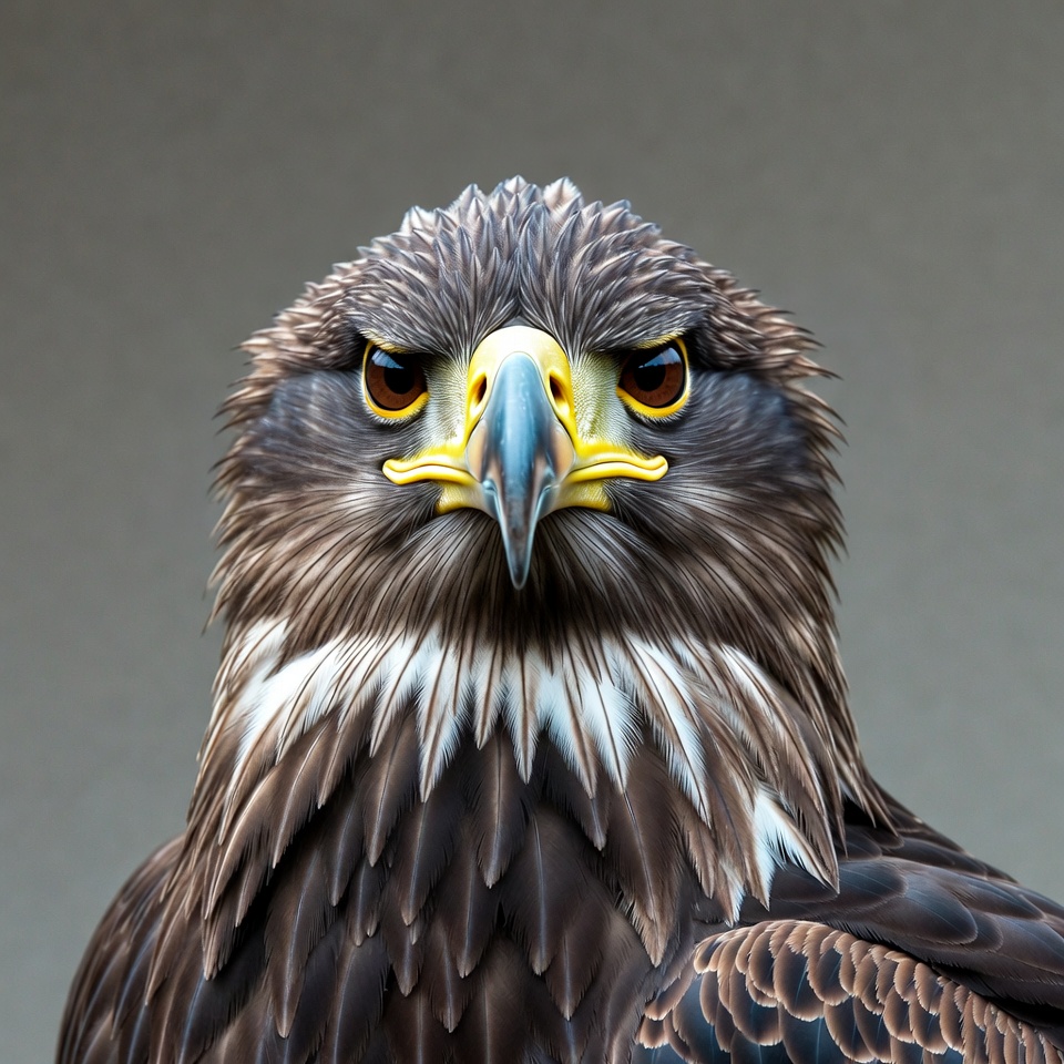 animal eyes, avian, bald eagle, bird, bird portrait, brown feathers, close-up, detailed feathers, feathers, head, intense gaze, isolated background, majestic eagle, predator, raptor, sharp eyes, wildlife, yellow beak, eagle