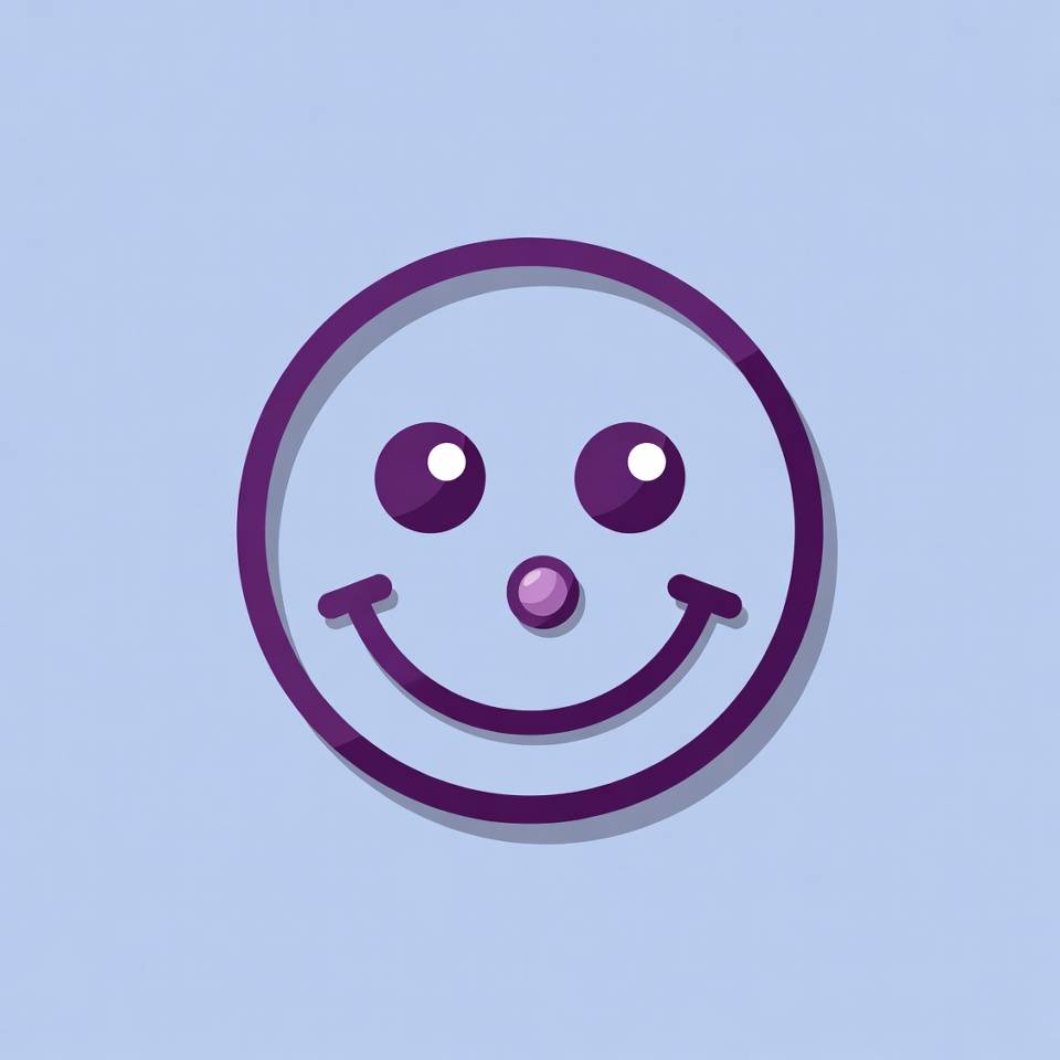 big eyes, cartoon face, cheerful, clipart, cute face, emoji, graphic, happy face, icon, illustration, light blue background, outline, pink nose, purple smiley, round face, simple icon, smiley, smiling emoji, vector, smiley face