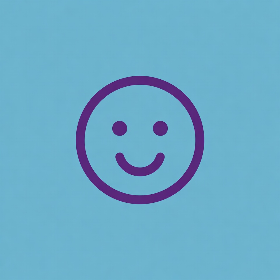 cartoon face, clipart, emoji, eyes, face, graphic, happy face, icon, illustration, isolated background, light blue background, outline, purple, simple icon, smile, smiley, symbol, vector, smiley face