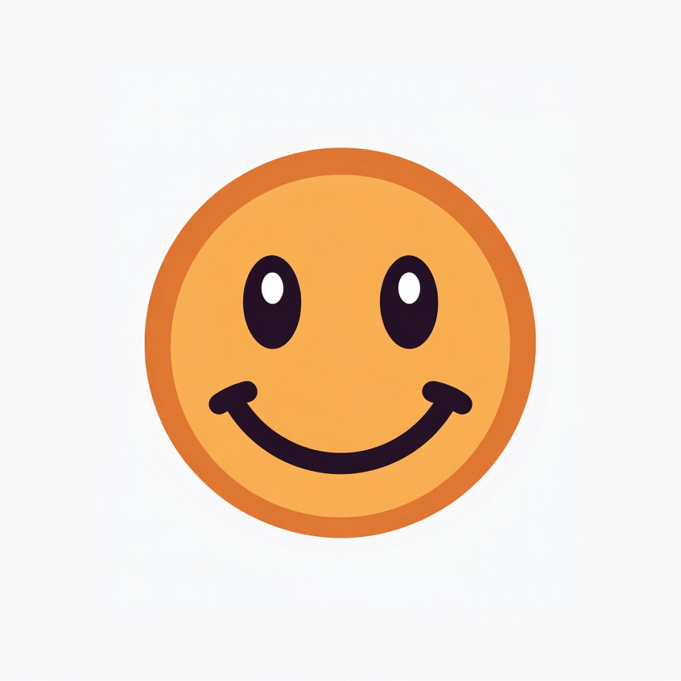 cartoon face, clipart, emoji, flat design, happy face, illustration, isolated background, orange outline, round eyes, smiling emoji, wide smile, yellow emoji, smiley face