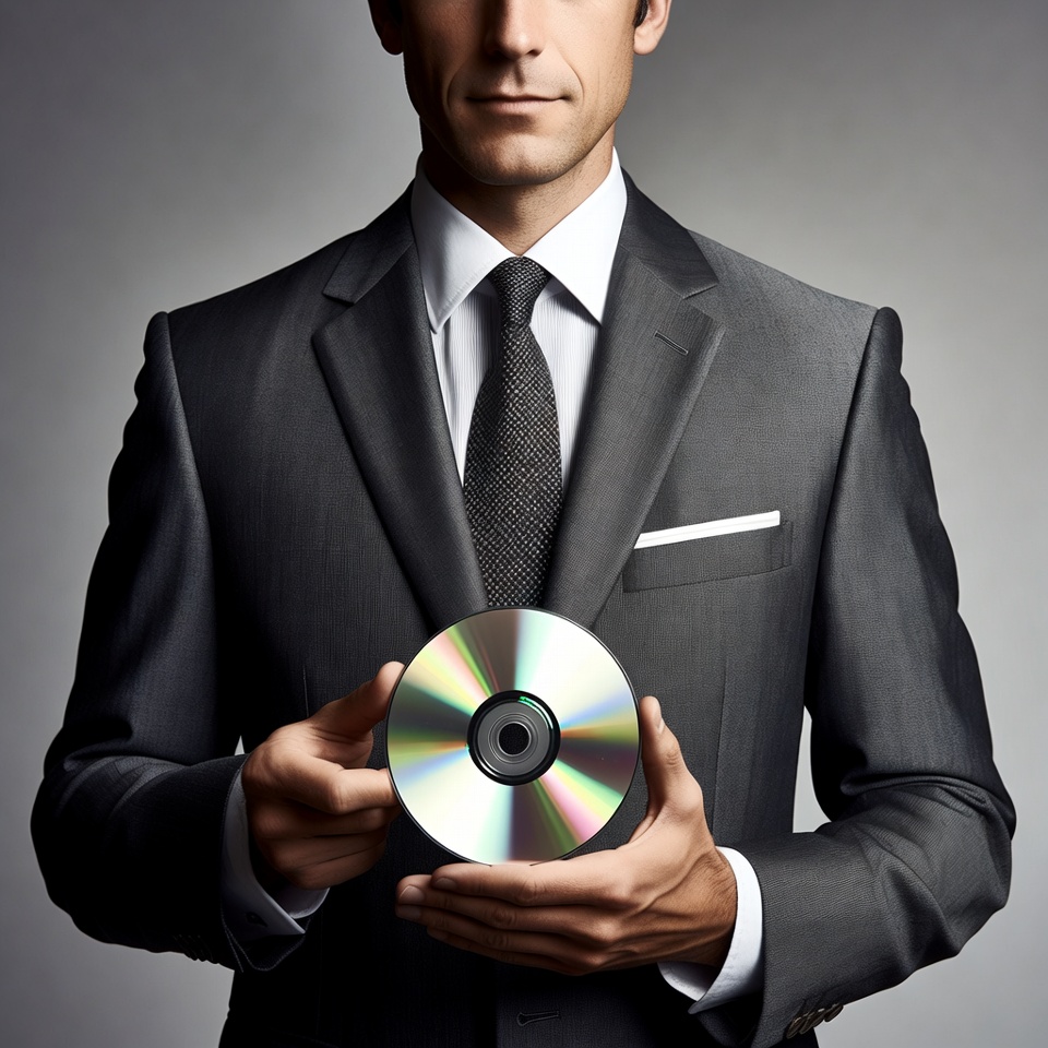 Man holding CD in suit