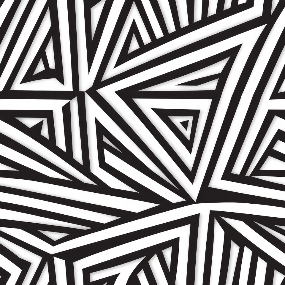 abstract design, angles, angular design, background texture, black outlines, black white, bold lines, digital art, fabric design, fractal triangles, graphic design, interlocking shapes, lines, modern pattern, monochrome, op art, optical illusion, repeating pattern, seamless pattern, sharp edges, triangle pattern, triangles, vector art, wallpaper pattern, white triangles, zigzag, geometric pattern