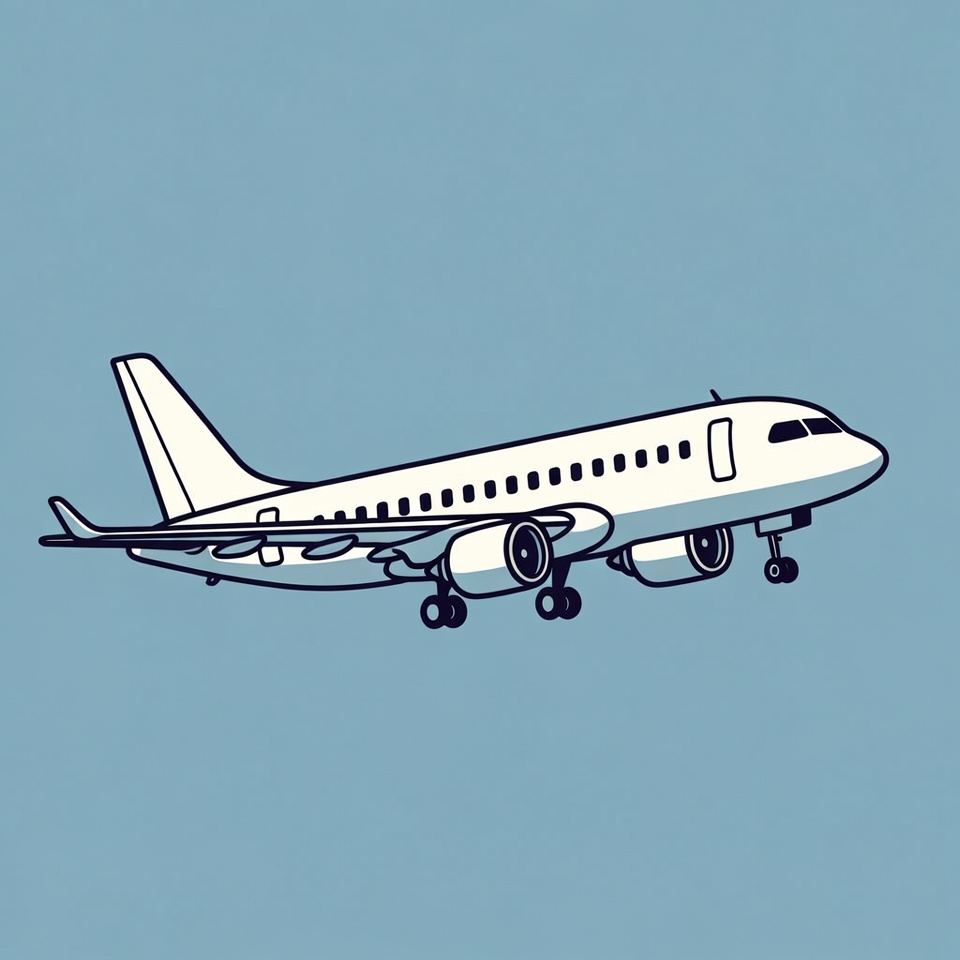 aircraft, aviation, blue background, cartoon airplane, clipart, commercial jet, engines, flying machine, illustration, isolated background, landing gear, line art, passenger plane, plane, vector art, white airplane, wings, airplane