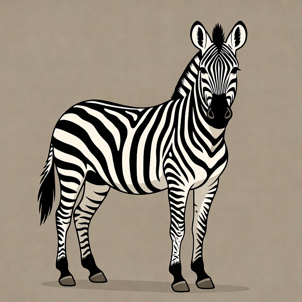 animal, black stripes, cartoon zebra, clipart, equine, illustration, isolated background, safari animal, side view, standing zebra, striped animal, vector art, white stripes, wildlife, zebra