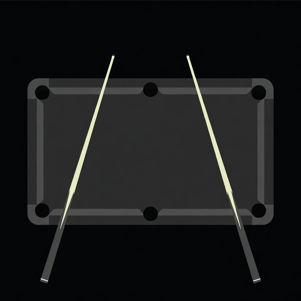Two white pool cues are crossed and leaning against a green felt billiard table. The table features six black pockets along its edges. The image is rendered in a simple, transparent illustration style on a black background.