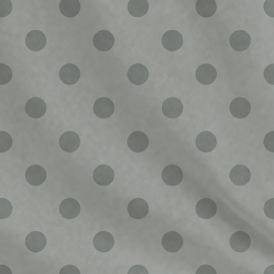 A seamless pattern features evenly spaced gray dots on a light gray background. The dots are circular and uniform in size, creating a classic polka dot design. The fabric-like texture adds a subtle depth to the repeating motif.
