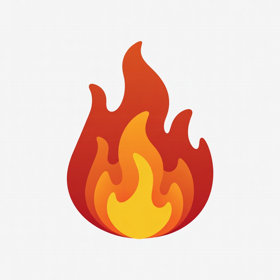 blaze, burning, clipart, combustion, emoji style, fiery, flame, flames, graphic, heat, illustration, inferno, isolated background, orange fire, red flames, vector art, yellow center, fire
