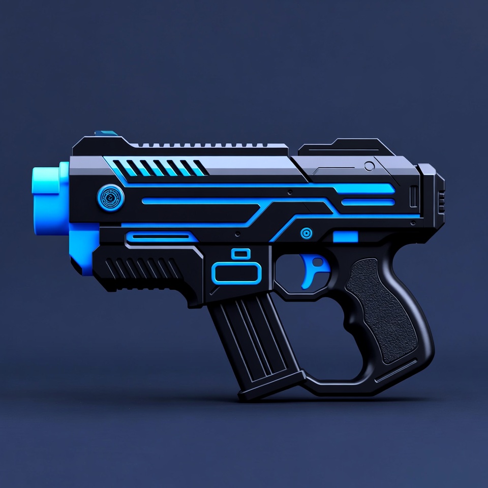 3D render, black pistol, blaster, blue glow, blue neon, cyberpunk, cyberpunk weapon, firearm, futuristic weapon, glowing gun, handgun, isolated background, laser pistol, magazine, neon lights, neon pistol, pistol grip, sci-fi, sci-fi gun, toy gun, trigger, weapon, futuristic pistol