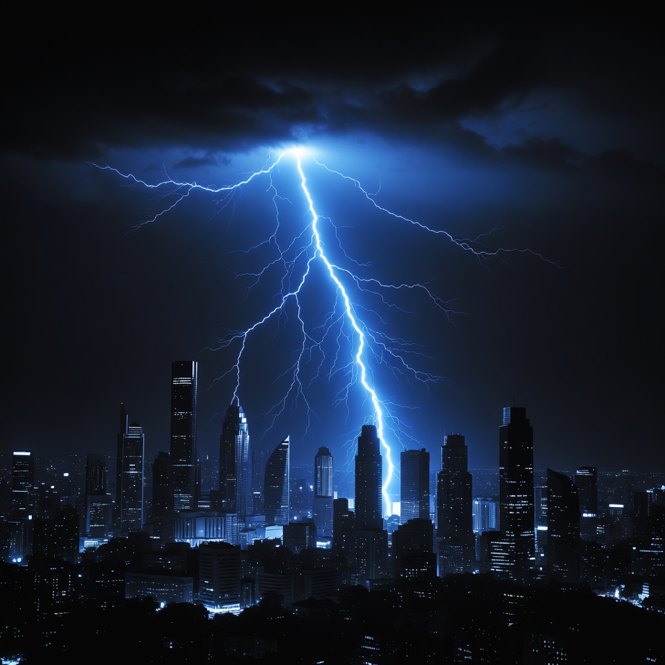 Lightning Striking City Skyline