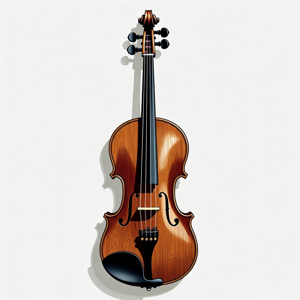 bow hold, chin rest, classical music, clipart, f-holes, fiddle, glossy finish, illustration, isolated background, musical instrument, musician tool, orchestra, strings, tailpiece, vector art, white background, wood grain, violin