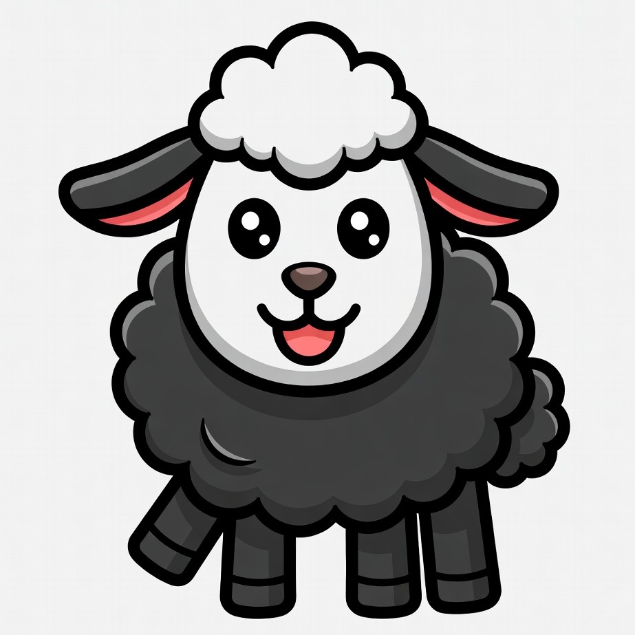 adorable sheep, animal, big eyes, black sheep, clipart, cute sheep, farm animal, fluffy sheep, happy sheep, illustration, isolated background, kawaii sheep, pink ears, sheep illustration, smiling sheep, vector art, white background, woolly sheep, cartoon sheep