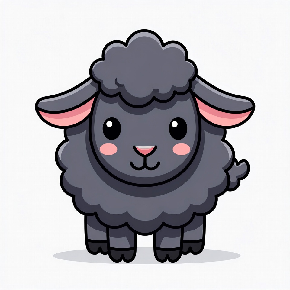 adorable sheep, animal cartoon, big eyes, black sheep, chibi sheep, clipart, cute sheep, fluffy sheep, illustration, isolated background, kawaii animal, pink ears, sheep illustration, smiling sheep, cartoon sheep