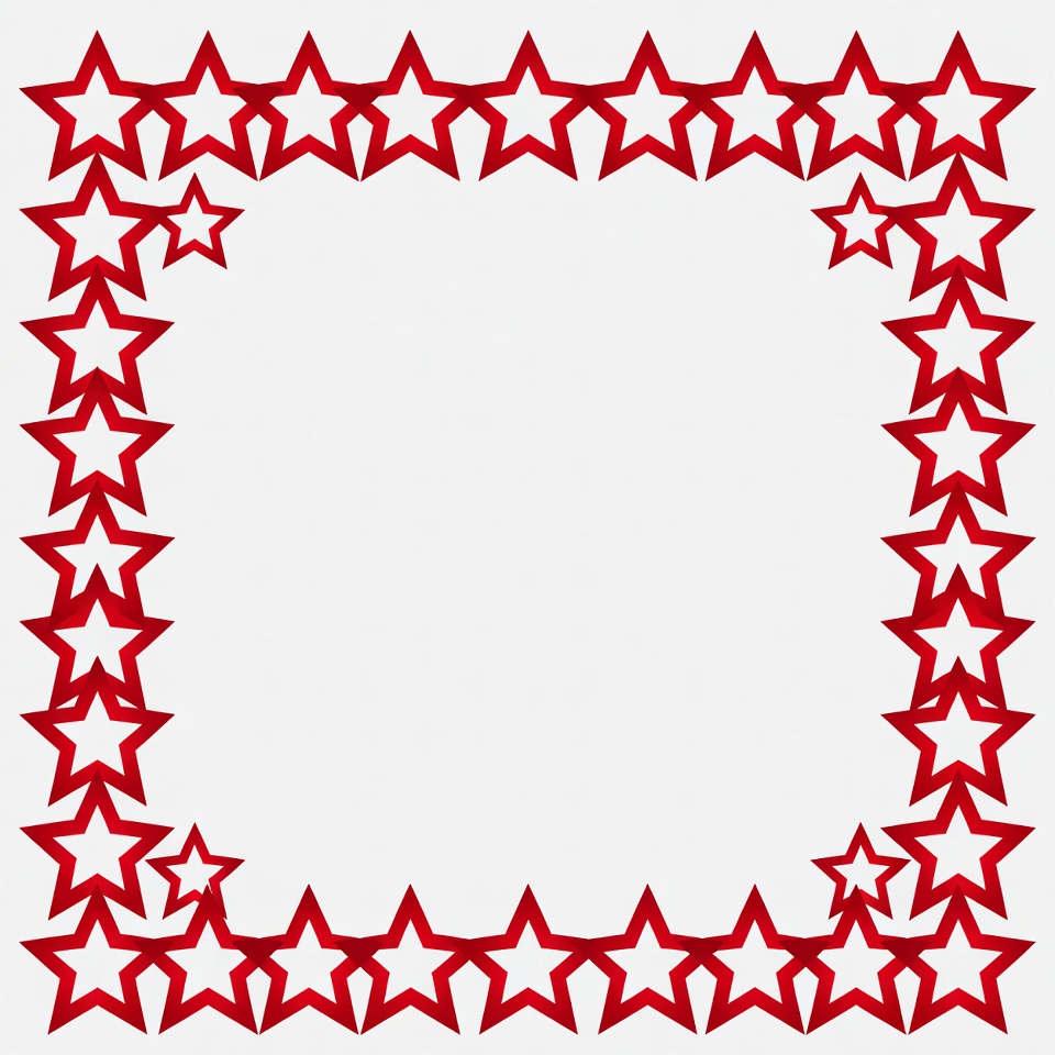 border design, clipart, decorative frame, empty frame, five-pointed stars, frame, graphic border, illustration, red, square frame, star border, star pattern, stars, white background, red stars