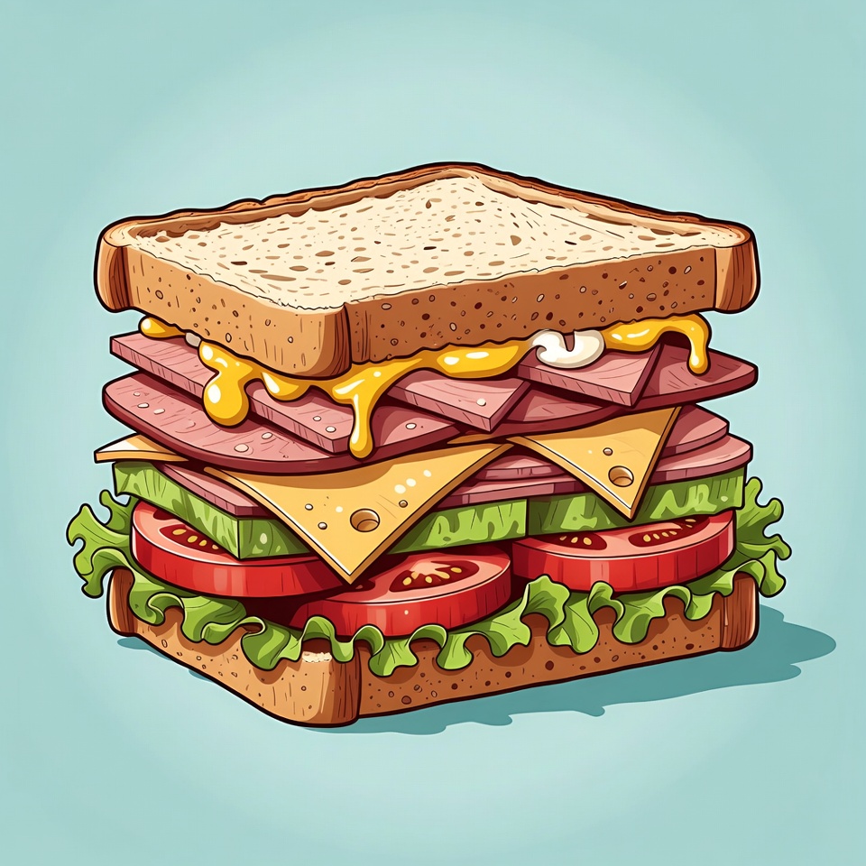 Stacked Ham and Cheese Sandwich Illustration