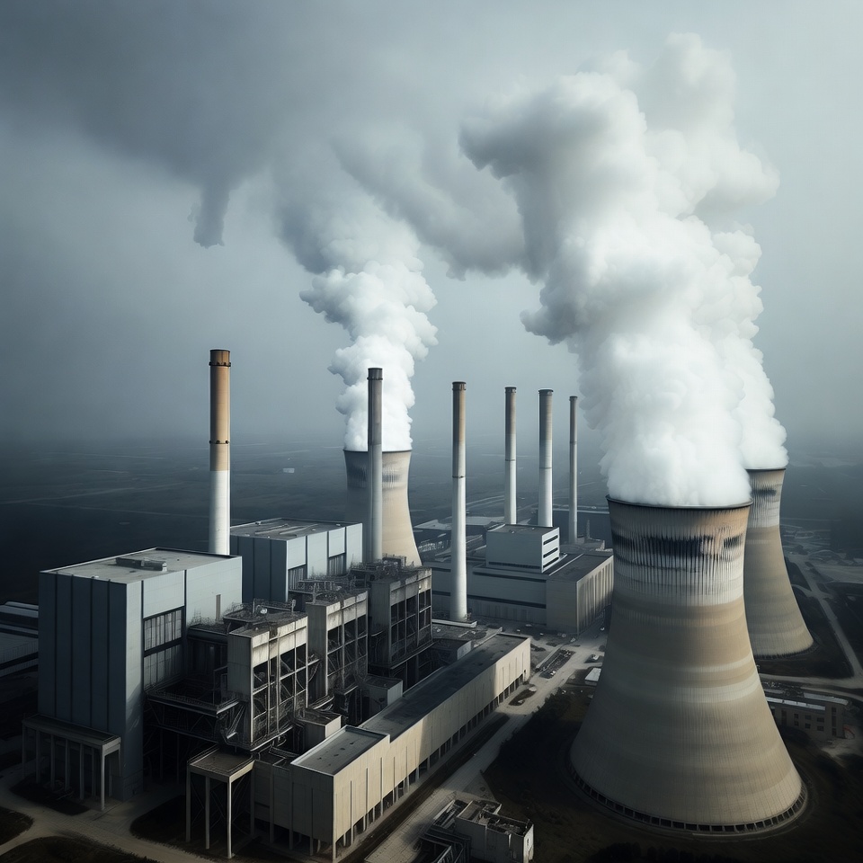 Industrial Power Plant Emitting Smoke