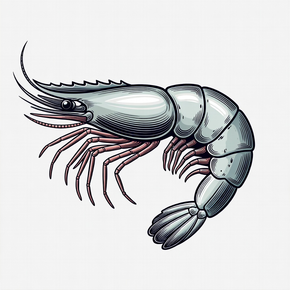Illustrated Shrimp on White Background