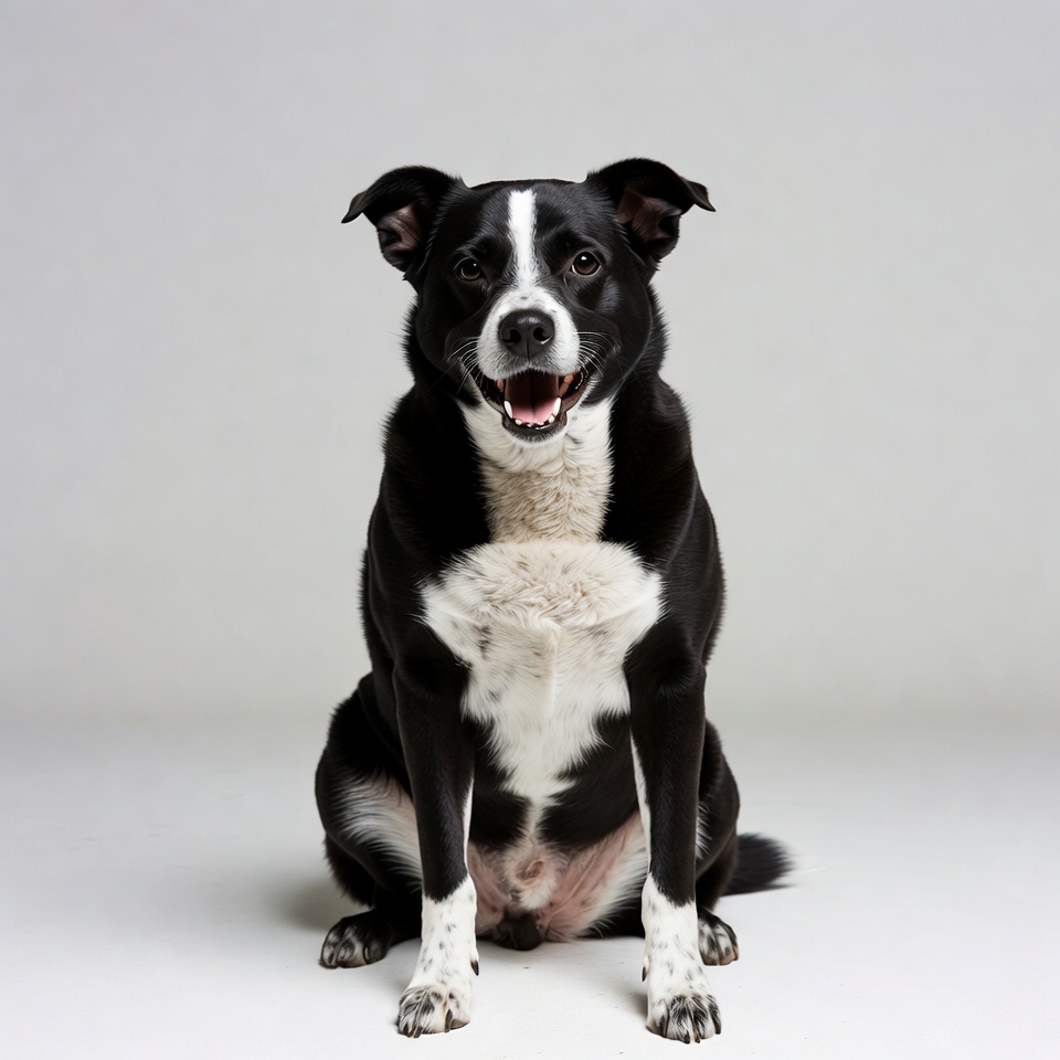 animal, black and white, canine, dog, ears perked, happy dog, isolated background, paws, pet, sitting, smiling dog, white background, white chest, Border Collie