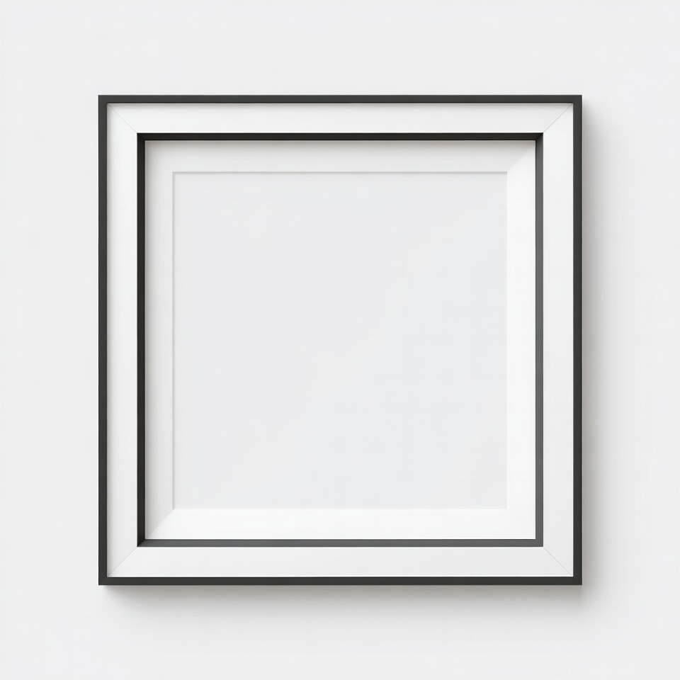 3D render, artwork frame, black frame, blank frame, display frame, double mat, empty frame, gallery frame, illustration, isolated background, mat board, modern frame, photo frame, poster frame, simple frame, square frame, wall art, white background, white frame, picture frame