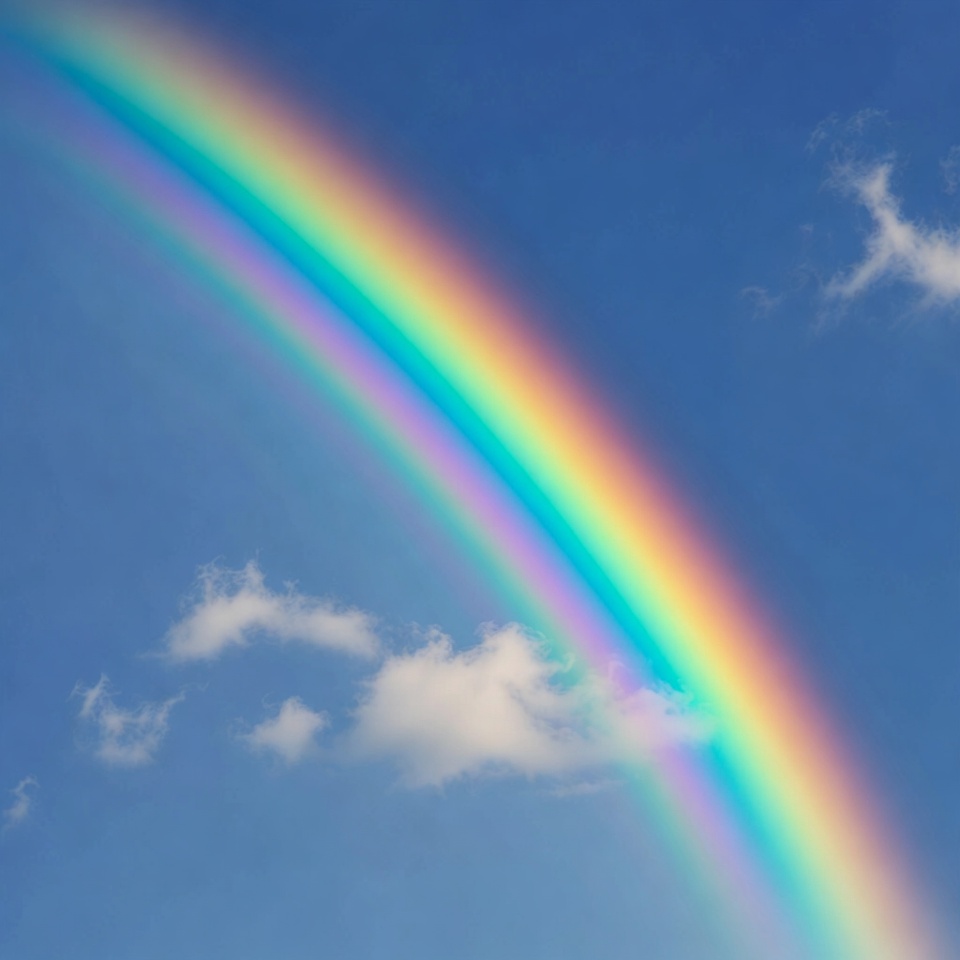 atmosphere, blue sky, bright colors, clouds, colorful arc, double rainbow, horizon, nature, outdoor, red orange yellow green blue indigo violet, scenery, sky, vibrant rainbow, weather, white clouds, rainbow