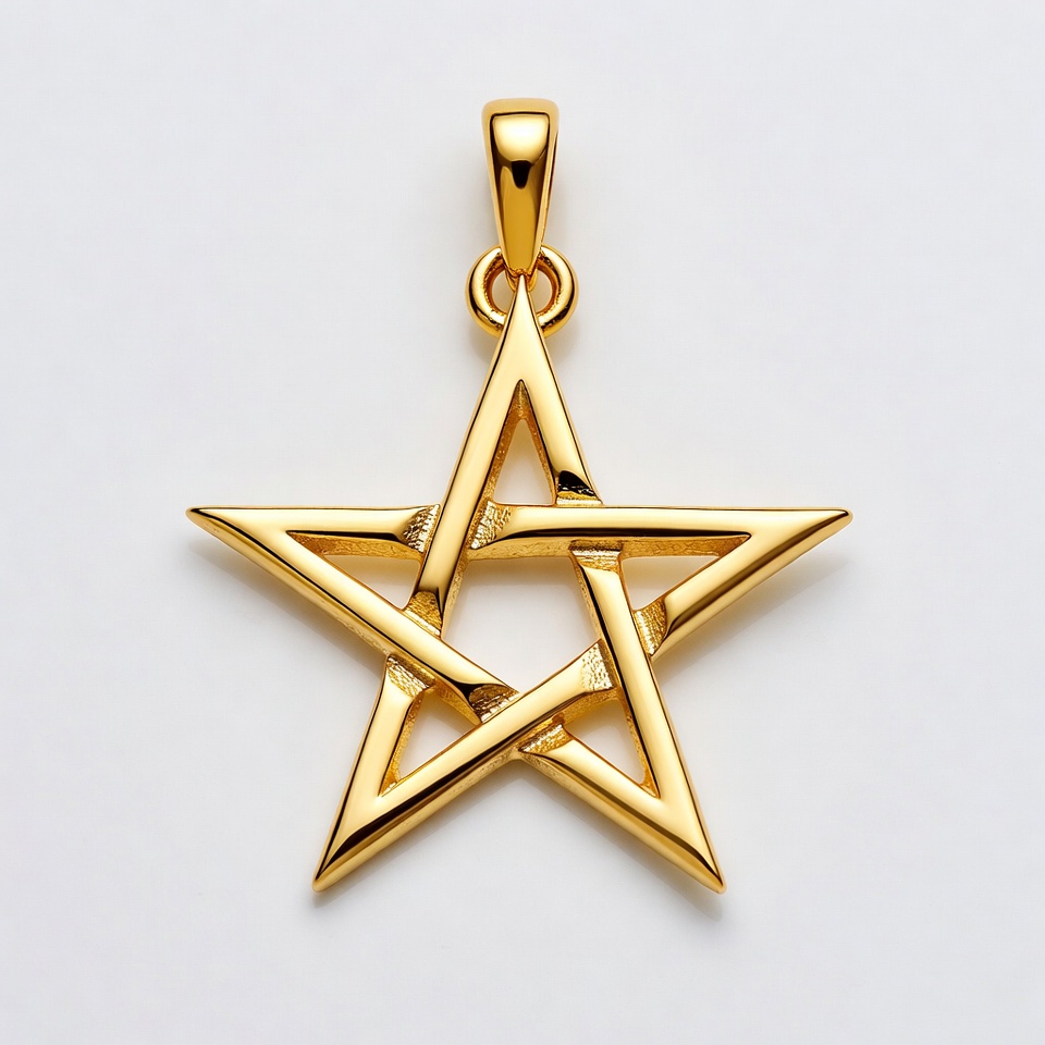 chain bail, five-pointed star, geometric design, gold jewelry, isolated background, jewelry, mystical pendant, necklace, occult symbol, pendant, pentagram, shiny gold, star, star necklace, gold pendant