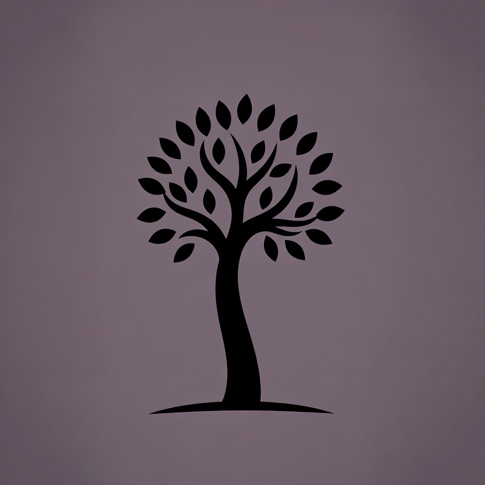 black tree, clipart, deciduous tree, foliage, graphic, icon, illustration, isolated background, leaves, minimalist, nature, outline tree, plant, purple background, silhouette, simple tree, trunk, vector tree, tree