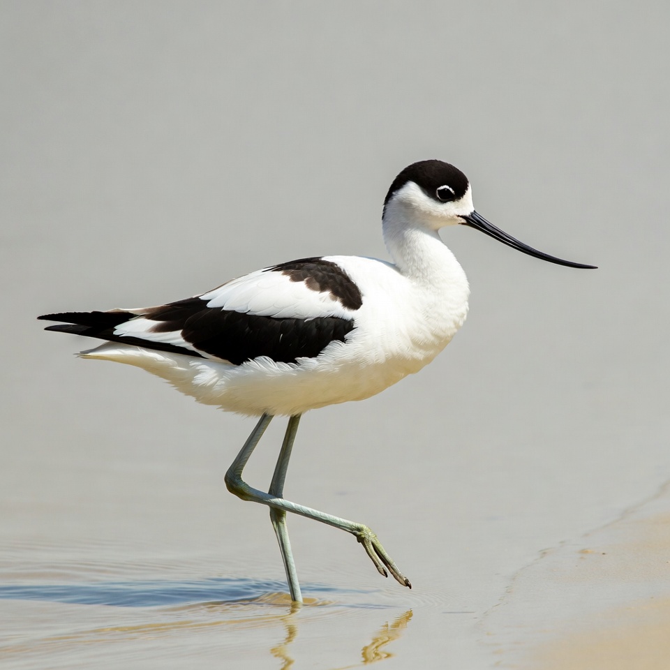 bird, black bill, black cap, black wings, isolated background, long bill, long legs, nature, red legs, shallow water, shorebird, standing, stilt, wading bird, water bird, white body, wildlife, black-necked stilt