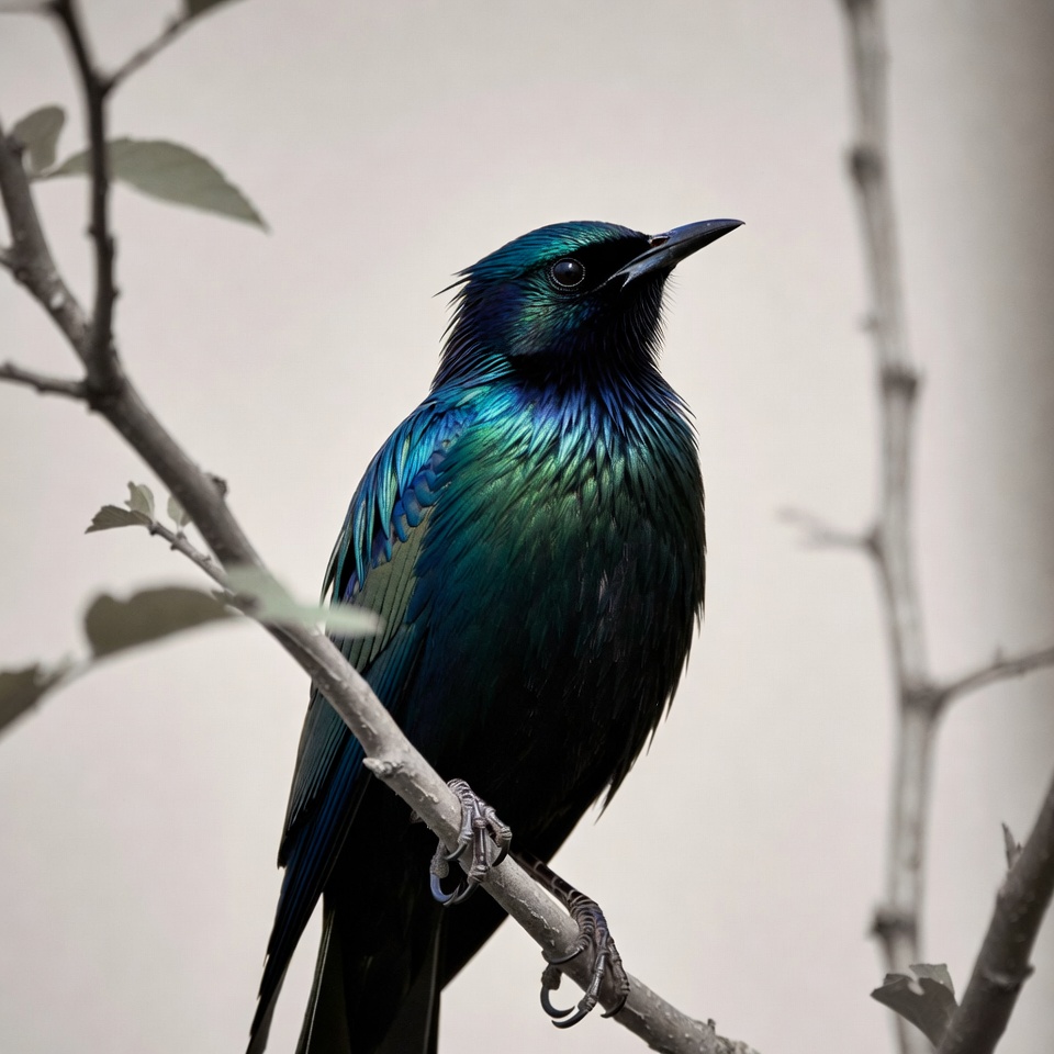 Iridescent Grackle Perched on Branch