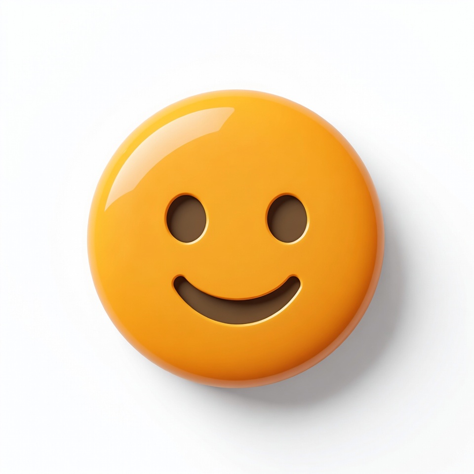 3D emoji, brown eyes, clipart, curved smile, glossy emoji, happy face, illustration, isolated background, orange circle, smiley face, smiling emoji, yellow emoji, emoji