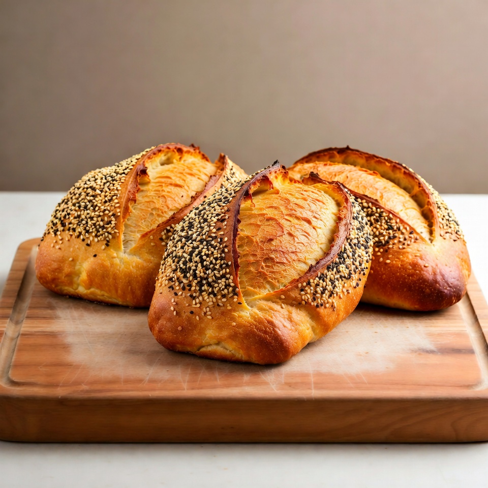 Three Sesame Seed Breads on Board