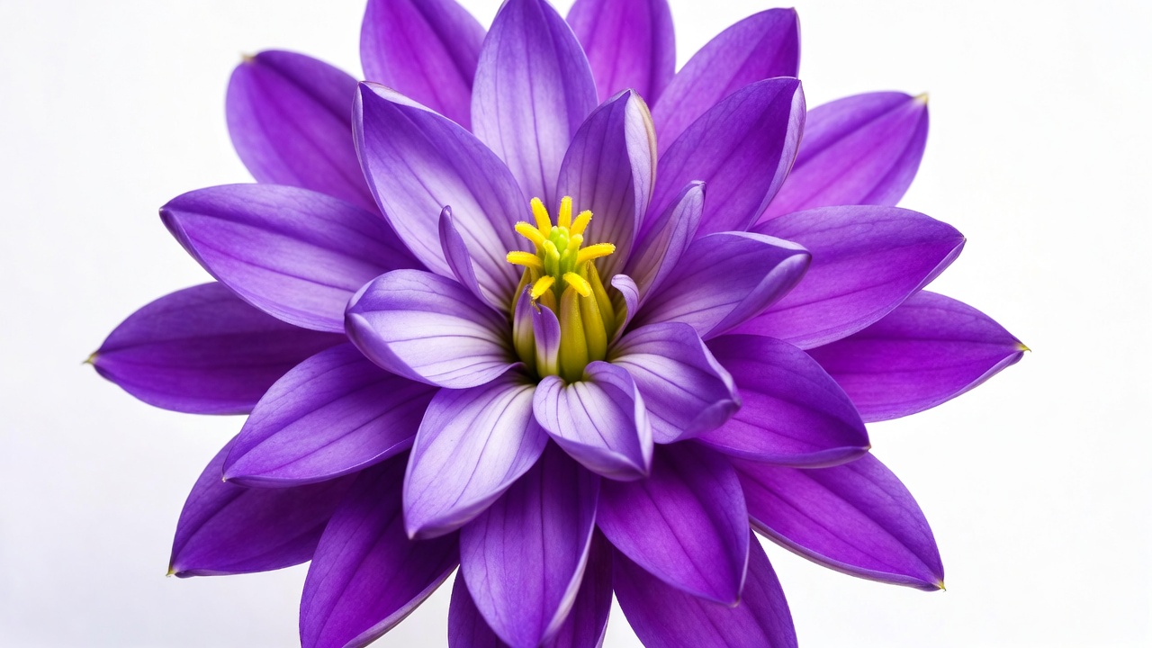 bloom, closeup, floral, flower macro, flower petals, isolated background, nature, petals, purple flower, stamen, vibrant purple, water lily, white background, yellow center, lotus flower