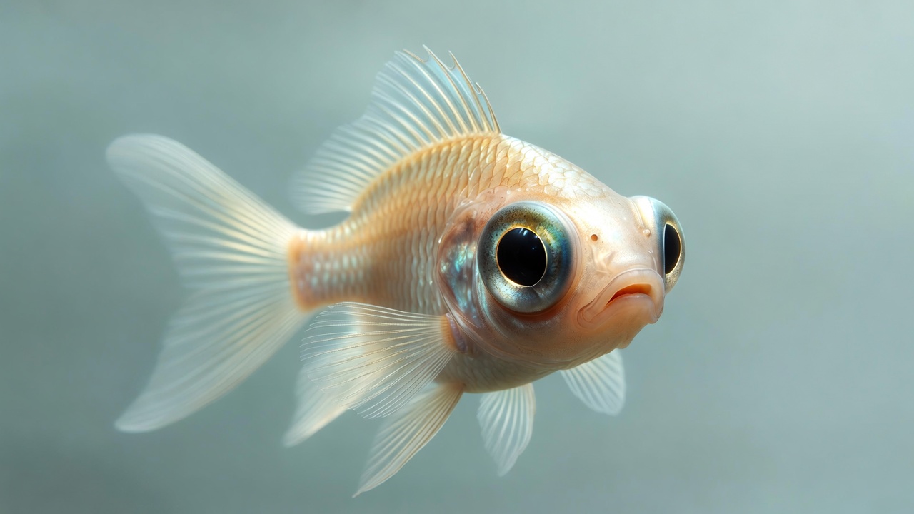 aquarium fish, aquatic animal, big eyes, bulging eyes, fish, green eyes, isolated background, large eyes, orange fish, pet fish, swimming fish, white fins, goldfish