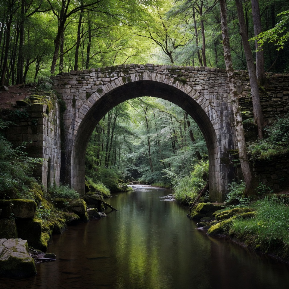 Stone Arch Bridge over Forest Stream