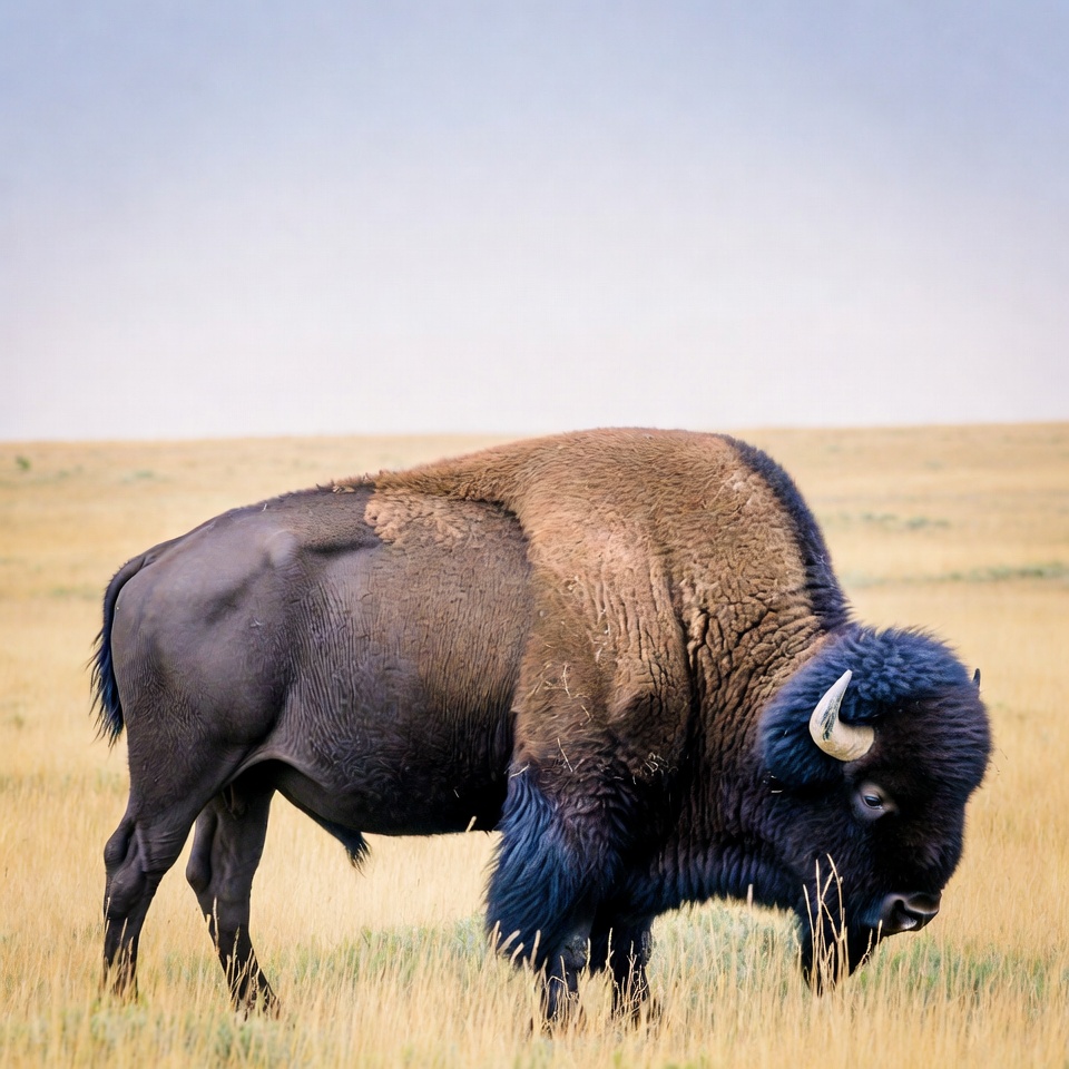 american bison, animal, brown bison, buffalo, field, golden grass, grass, grazing, horns, large mammal, meadow, nature, outdoors, plains, prairie, shaggy fur, sky, wild animal, wildlife, bison
