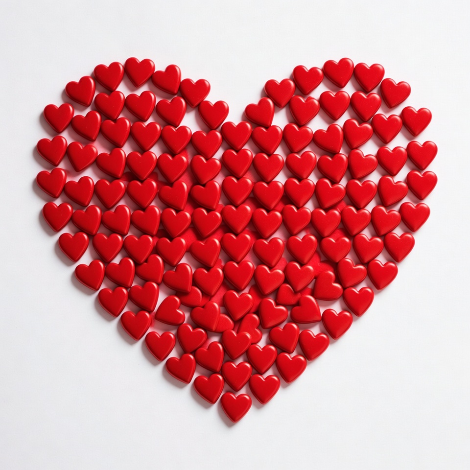 Red hearts forming heart shape